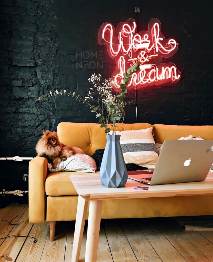 Здорово смотрятся неоновые надписи, они подойдут в современные интерьеры.