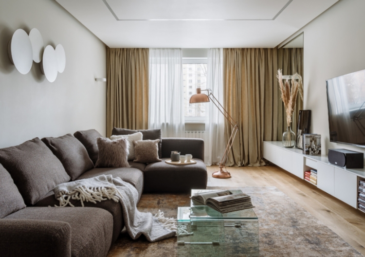 Особое внимание уделите зоне отдыха: дивану и креслам. Обустройте свой уголок на любимом месте, добавьте покрывало и подушки в цвет.