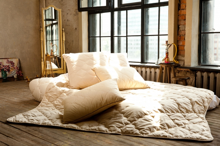 Выложите на заправленную кровать подушки и пледы