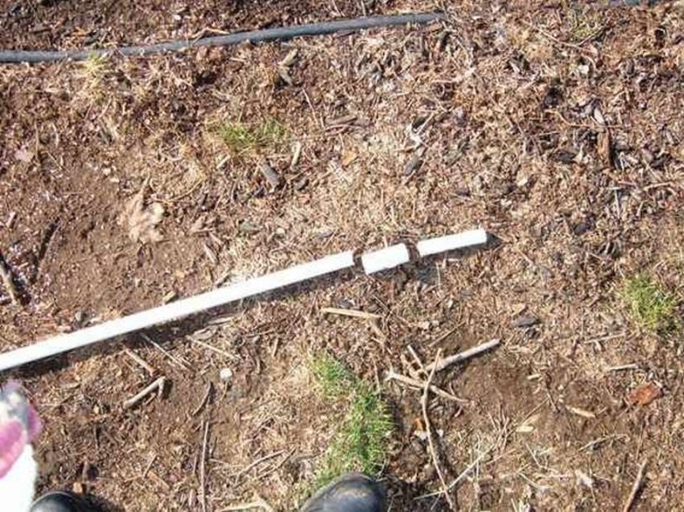 - Шестой шаг. Выполните разводку труб по помещению теплицы. Разложите трубы по земле с шагом 120 см. Такое расположение отопительных элементов будет способствовать эффективному прогреву грунта в местах нахождения растительных корней.
