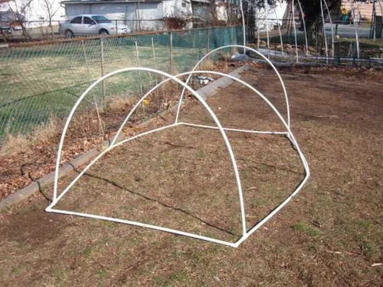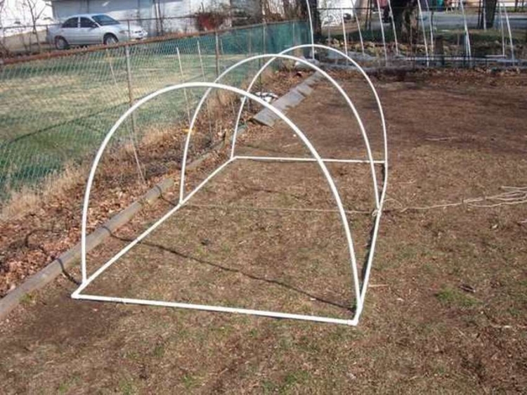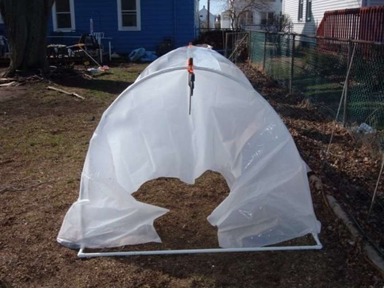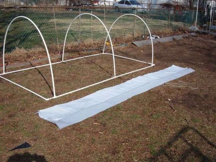 - Пленка закрепляется посредством зажимов. Их можно приобрести в специализированных магазинах. Они могут быть сделаны из труб на основе пластика.