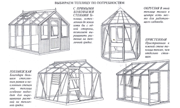 Теплицы различают по форме каркасной конструкции и материалам изготовления. По форме каркаса постройки могут быть: