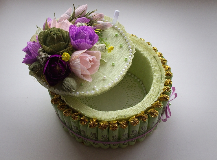 - можно сделать макет заполняемым внутри теми же конфетами или пустым – на ваш вкус;